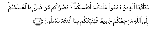 “O you who have believed, upon you is [responsibility for] yourselves. Those who have gone astray will not harm you when you have been guided. To Allah is your return all together; then He will inform you of what you used to do.” (Qur’an, Chapter 5, verse 105)Imam Zaid says it like this in the Treatise for the Seekers of Guidance: “The Prophet, peace upon him, said, “From a person’s Islam being good is his leaving what does not concern him.” Our concern is the Hereafter, and the successful meeting with God. Our concern is working so that we can be amongst those experiencing the Beatific Vision. Whatever helps us towards these goals in this world we gladly engage in it. We leave all else.”
