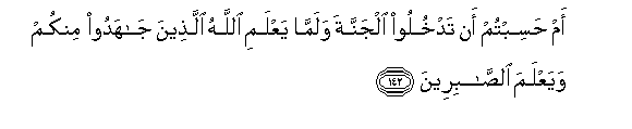 Qur’an, chapter 3 (Āl ‘Imrān), verse 142: “Did you think you would enter the Garden without God first proving which of you would struggle for His cause and remain steadfast?” [Haleem, M. A. S. Abdel; The Qur’an (Oxford World’s Classics) (p. 44). Oxford University Press. Kindle Edition.]